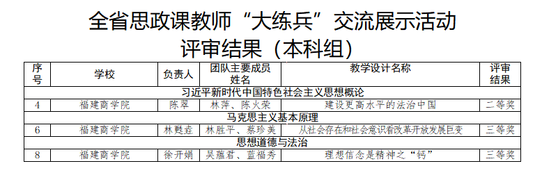 我院教师在全省思政课教师“大练兵”交流展示活动中获得本科组二等奖1个,三等奖2个,具体名单如下:
