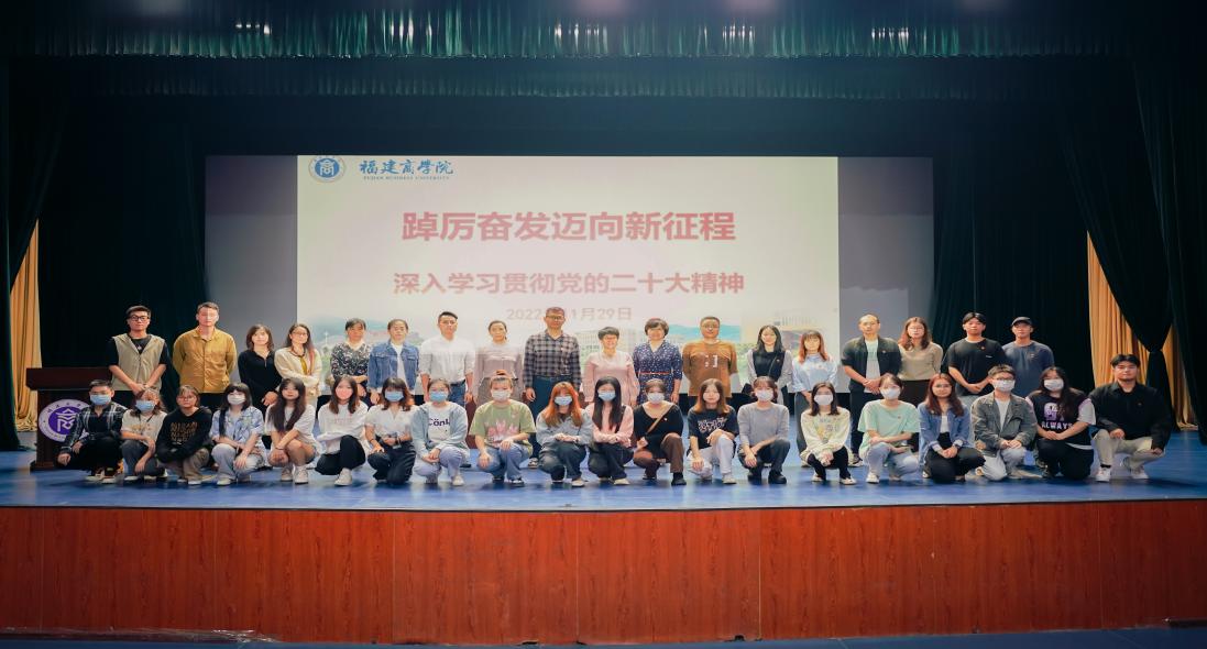 近日,福州市委讲师团成员、福建师范大学杨林香教授在我校连江校区学生活动中心开展题为《踔厉奋发迈向新征程——深入学习贯彻党的二十大精神》的专题讲座。我校艺术设计学院、成全视频在线观看中文版、财务与会计学院、团委、习近平新时代中国特色社会主义思想学生读书社及“青马班”师生代表参加了学习。
