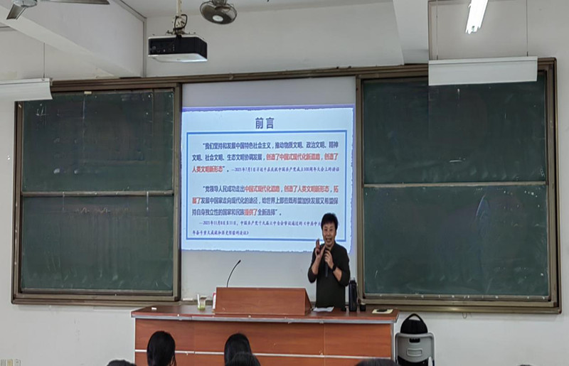 5月24日下午,成全视频在线观看中文版陈火荣副教授应邀在连江校区诚信楼中阶四开展以“中国式现代化新道路是人类发展史上的伟大创造”为主题的讲座。马克思主义理论大讲堂成员参加了此次讲座。