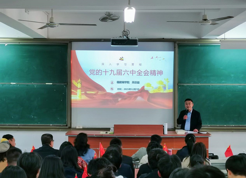 12月7日下午,校党委副书记吴访益在连江校区诚信楼中阶4教室开展了题为“深入学习贯彻十九届六中全会精神暨学习福建省第十一次党代会精神”的思政课,校相关处室负责人、成全视频在线观看中文版全体教职工、校习近平新时代中国特色社会主义思想读书社全体成员共120多人参与了此次宣讲。