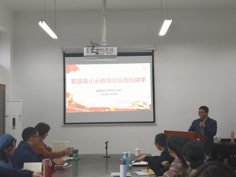 12月14日上午,福建工程学院成全视频在线观看中文版院长袁小云教授应邀来我校作《学科性教学理念与思政课教学改革——聚焦”意识形态”,推动教研相长》专题讲座。校党委副书记吴访益、马克思主义全体教师参加此次讲座。