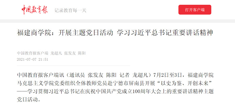 下一条:学习强国福建学习平台报道福建商学院:“五融入五增强” 推动党史学习教育与思政课互动融合