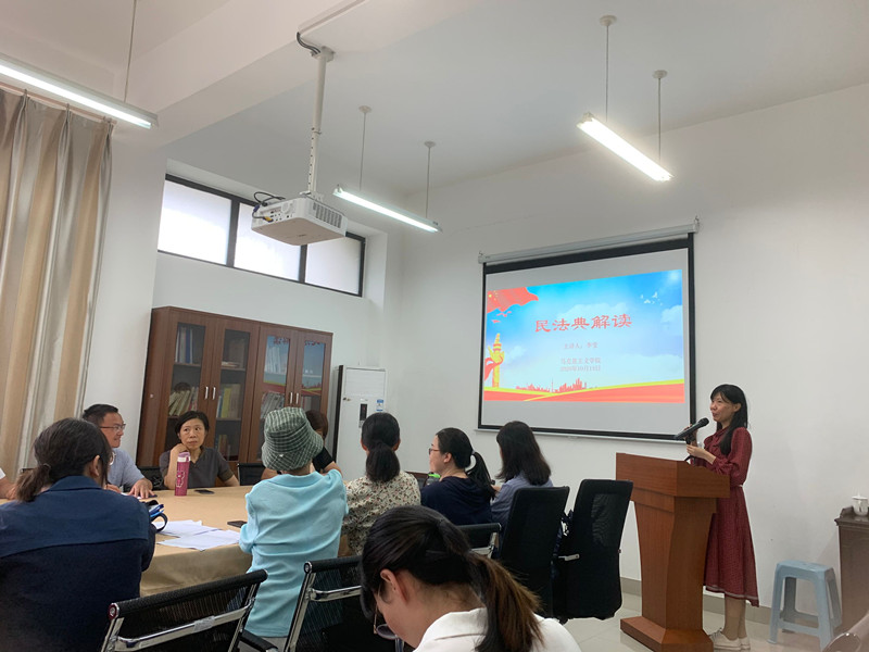 2020年10月13日下午,成全视频在线观看中文版直属党支部在院部会议室召开了《中华人民共和国民法典》的学习活动,成全视频在线观看中文版副教授李莹老师做了题为《民法典解读》的主题讲座。讲座由林萍书记支持,成全视频在线观看中文版全体党员教师聆听了这场讲座。