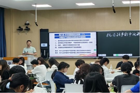 5月10日下午,成全视频在线观看中文版中国近现代史纲要教研室叶陈钦老师在自强楼511智慧教室开展以“抗日战争的中流砥柱”为主题的示范型观摩课,授课班级学生、学校教师共60多人参加教研活动。