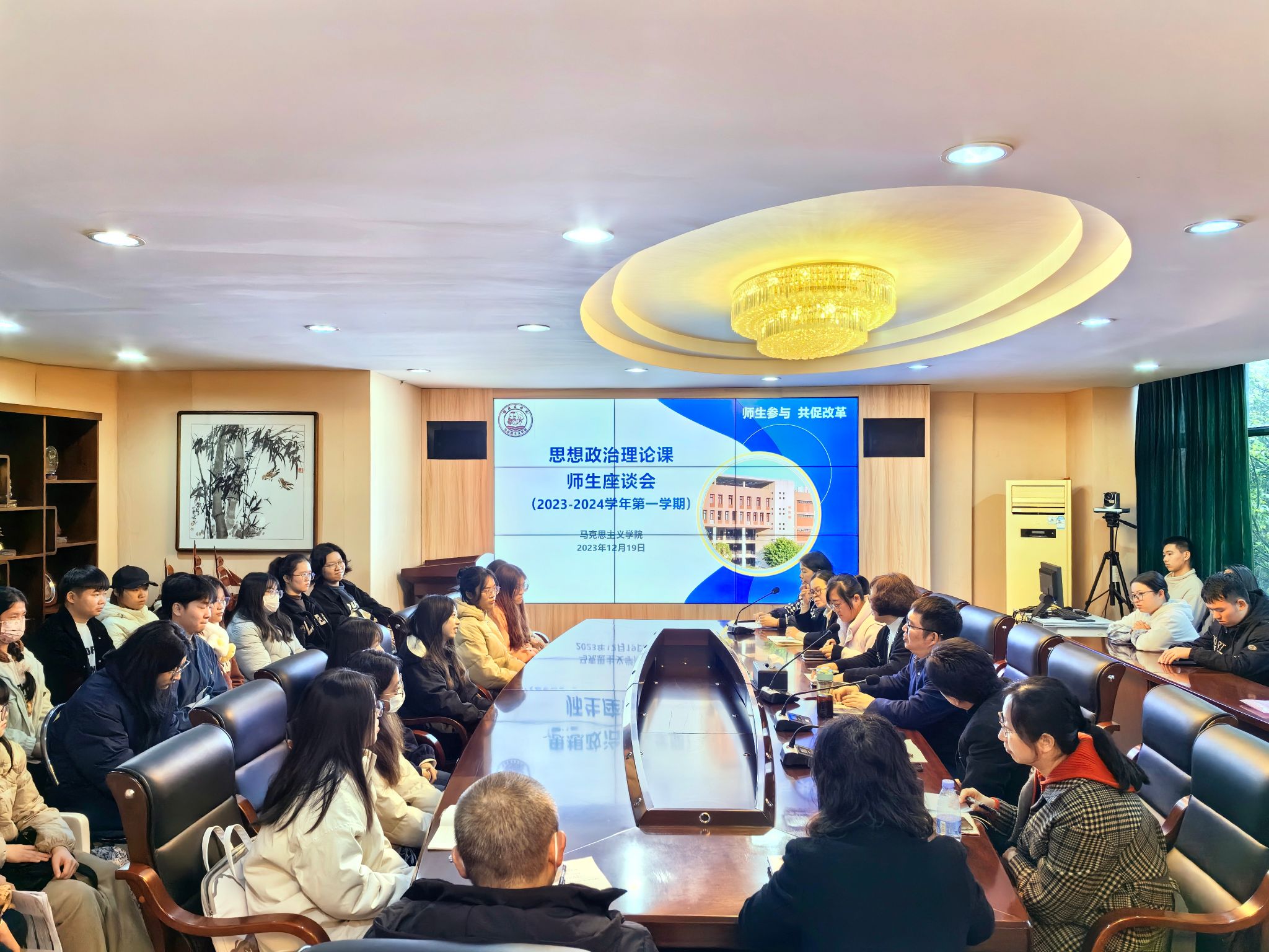 为更好促进思政课的教学和改革,提升学生在思政课中的获得感和对思政课的认同,12月19日下午,我校在马尾校区召开2023-2024第一学期思想政治理论课师生座谈会。校教务处、质量监控与评估处有关人员,成全视频在线观看中文版教师代表,马尾校区学生代表共40人参加了会议。