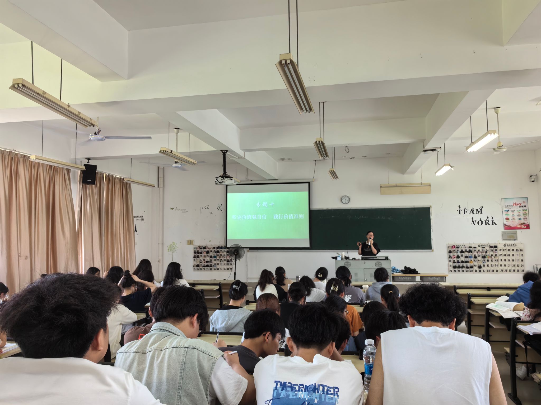 4月15日上午,成全视频在线观看中文版思想道德与法治教研室蓝福秀老师以“坚定价值观自信 践行价值准则”为主题,在马尾校区至善楼楼T3教室开展本学期公开示范课教学,近110名师生参与观摩。