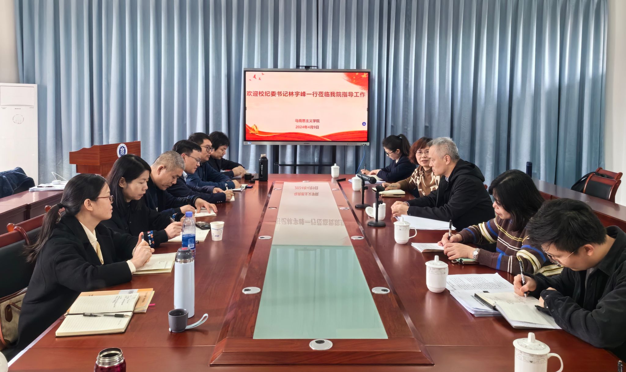 4月9日,校纪委书记林宇峰一行赴成全视频在线观看中文版开展调研并召开座谈会,学院领导班子成员、各教研室主任及教师代表参加。