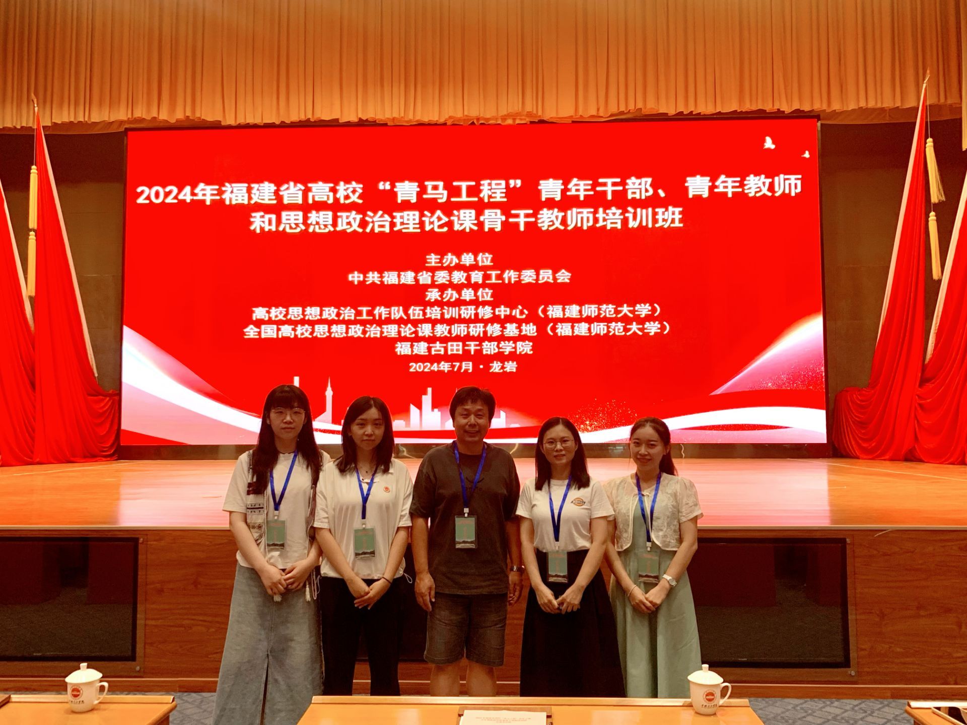 为全面学习贯彻党的二十届三中全会精神,推进学习贯彻习近平新时代中国特色社会主义思想主题教育走深走实,加强提升我省高校思政课骨干教师的素质和能力,为加快建设教育强省、办好人民满意教育提供坚实保障和人才支撑,2024年7月22日至24日,由省委教育工委主办、全国高校思想政治理论课教师研修基地(福建师范大学)、福建古田干部学院承办的2024年福建省高校思想政治理论课骨干教师培训班在福建古田干部学院举办。来自全省各高校的303名思政课骨干教师参加培训,我院选派陈火荣、徐开娟、郑南希、林甦垚、詹巧霞五位老师参加此次培训班学习。