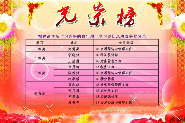 青春无边,奋斗以成。习近平青年观是在习近平总书记从一名普通青年成长为一名党和国家领导人的过程中逐渐形成的,是习近平新时代中国特色社会主义思想的重要内容,是指导做好新时代青年工作的基本遵循。比赛过程中,各参赛选手分别从“理想观”“实践观”“吃苦观”“奋斗观”“第一粒扣子”等方面,结合自己本学期进入读书社的学习情况与收获感受,阐述了自己对“习近平的青年观”的理解。经过激烈的角逐,最终来自管理工程系18级会展经济与管理2班的刘慧英同学折冠夺魁,荣获学习论坛决赛一等奖。