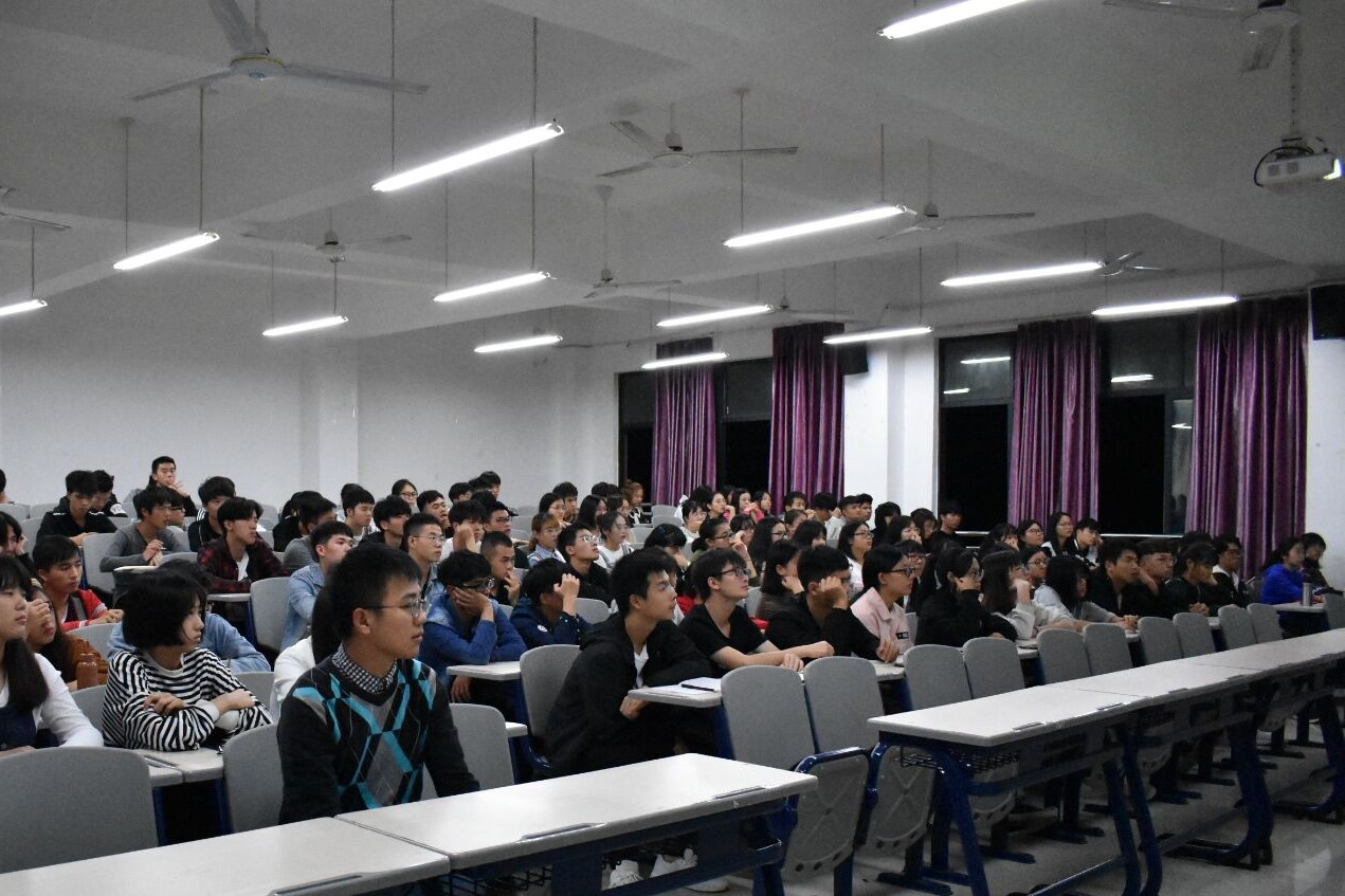 秉承时代精神,彰显青春风采。 11月5日晚,福建商学院习近平新时代中国特色社会主义思想读书社大学生宣讲小分队于连江校区诚信楼中介五举行本学期第五场宣讲会。本次活动由读书社骨干成员孟雨、陈安琪两位同学主讲,以“进社团”的形式,向我校校团委、校学生会和校社联学生干部近100名同学进行了宣讲。