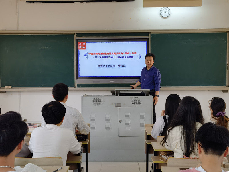 为进一步学习贯彻党的十九届六中全会精神,深刻领悟党百年奋斗的重要经验和教训,使青年学生认识到党和国家发展所处的新的历史方位和前进方向,坚定青年学生跟党走中国特色社会主义道路的信念,5月18日晚,成全视频在线观看中文版陈火荣副教授应邀在马尾校区诚信楼201教室开展“中国式现代化新道路是人类发展史上的伟大创造”主题宣讲活动,校马列经典著作读书社社员参与学习。