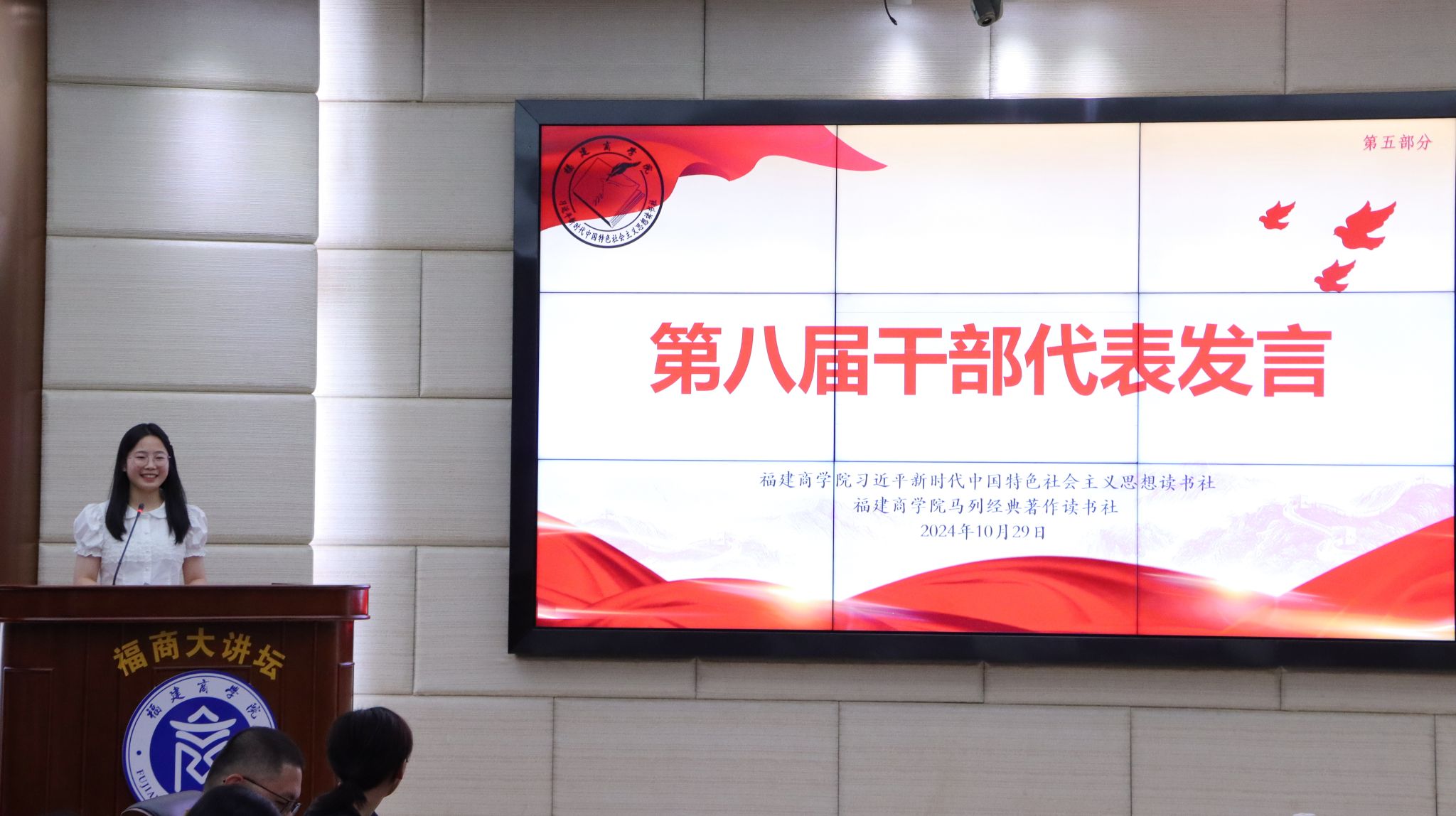 优秀干部代表回顾了过去一年在读书社中的读书与工作,新一届干部代表表示未来将继续积累组织经验,不断提升执行能力,与全体读书社学生干部共同努力,推动读书社建设取得新成效。