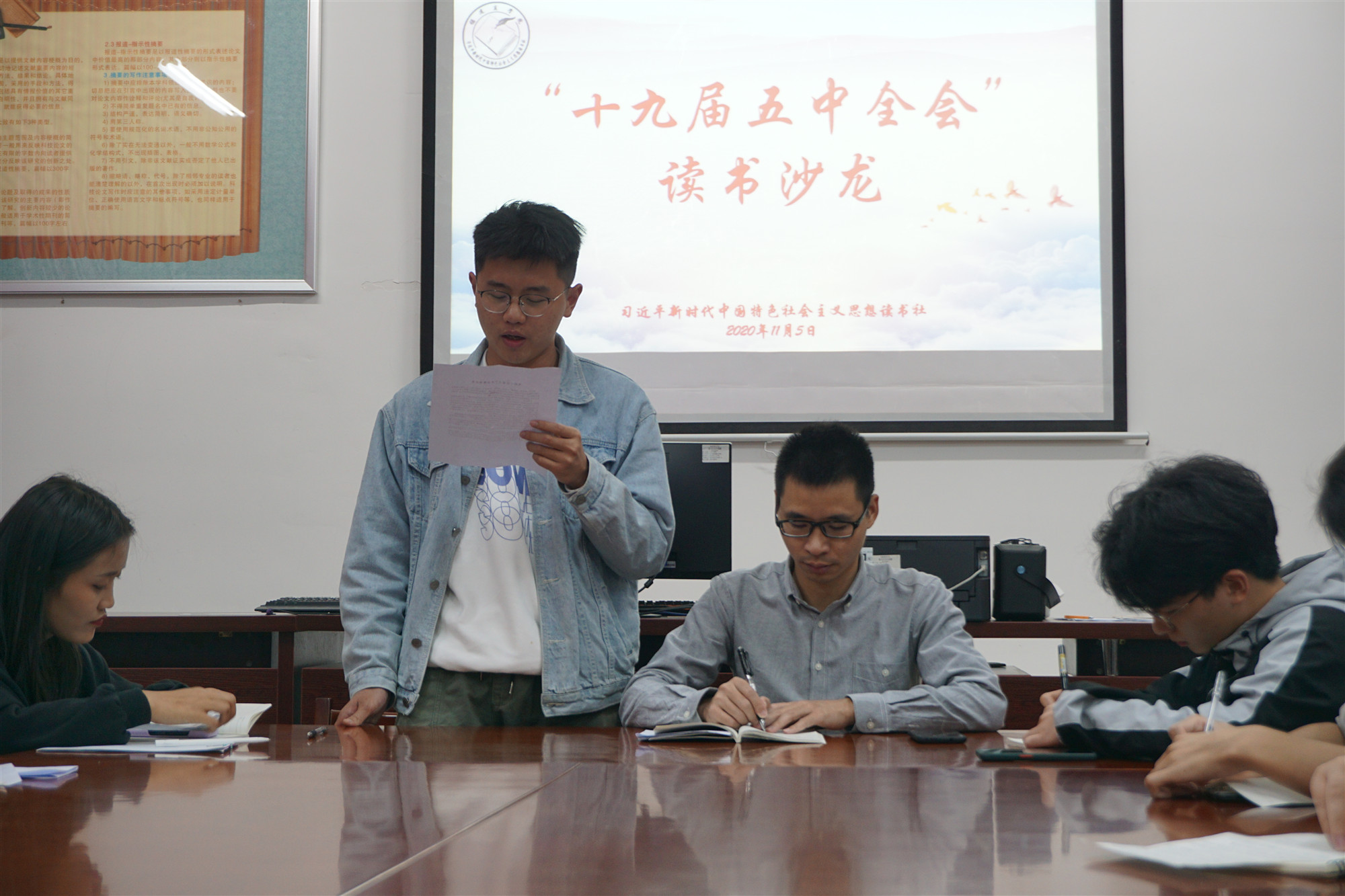 10月26日至29日,十九届五中全会在北京举行,全会在我校师生间引发强烈反响。近期,校习近平新时代中国特色社会主义思想读书社师生学习热议党的十九届五中全会精神,并通过读书沙龙、主题研讨等形式交流、分享学习心得。