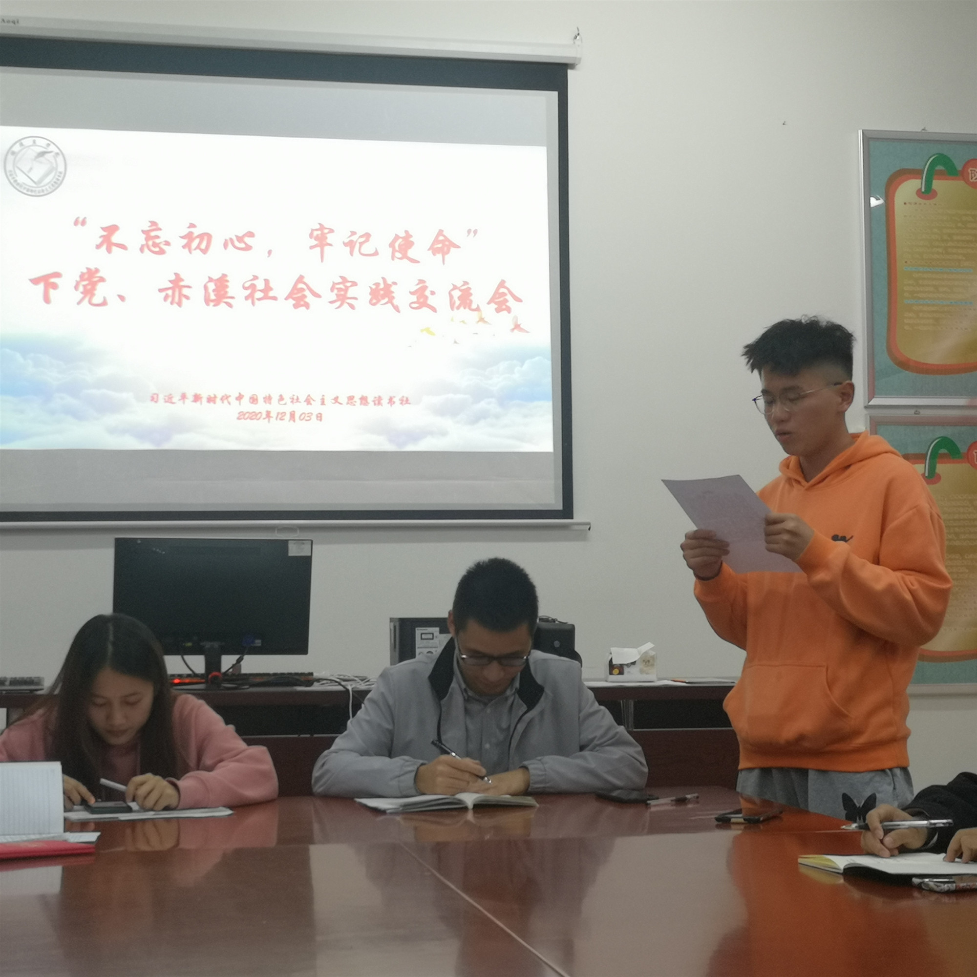 为深入学习贯彻习近平新时代中国特色社会主义思想,领会党和国家领导人民开展脱贫攻坚的奋斗历史以及取得的巨大成就。校习近平新时代中国特色社会主义思想读书社于2020年12月3日晚开展了“不忘初心、牢记使命”下党、赤溪参观考察活动交流会,师生热烈交流参观考察活动的所见、所思、所感。